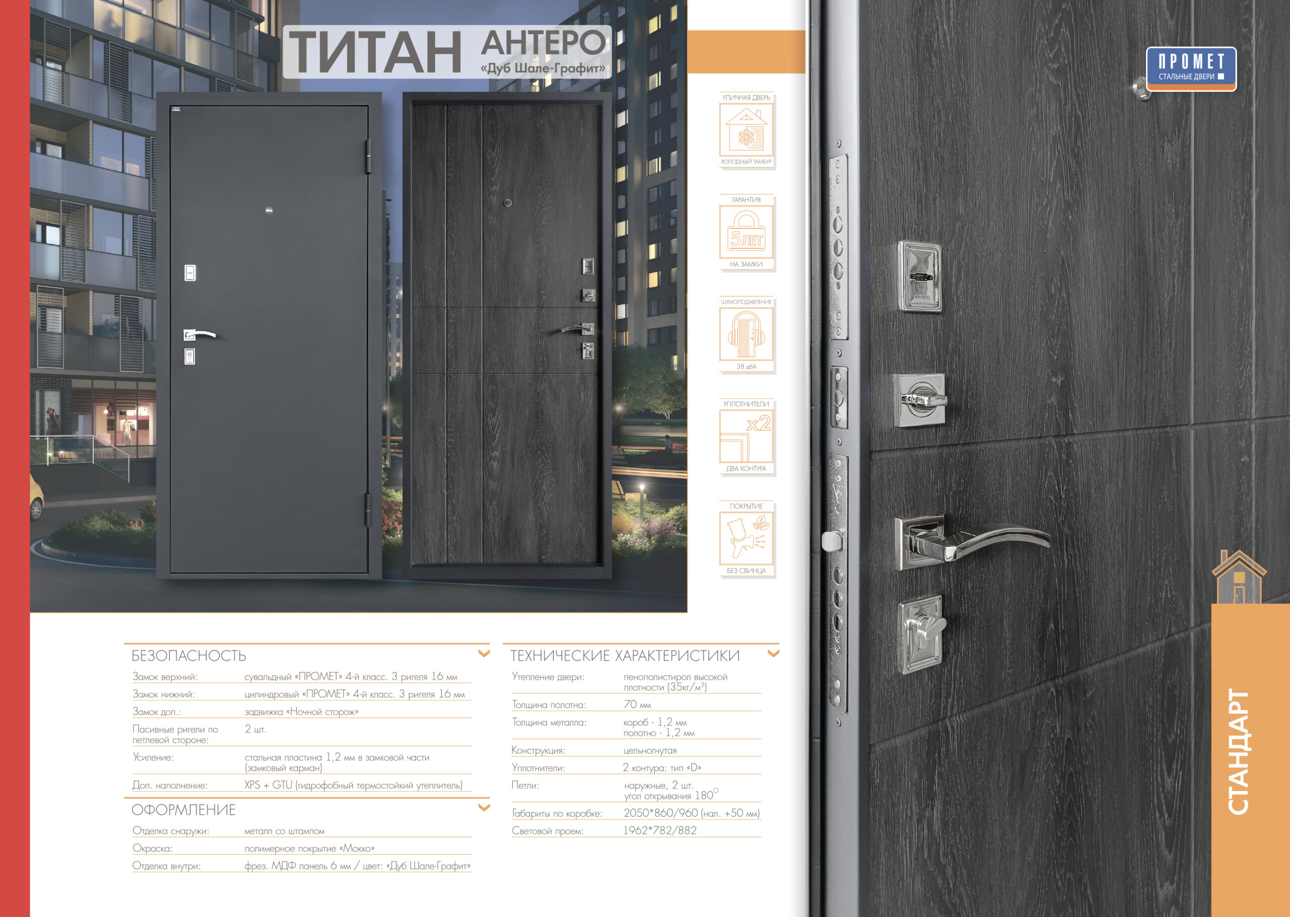 Кроме того, входные двери Промет создают комфортные условия для проживания в доме или квартире. Они гасят вибрации, поглощают звуки и эффективно удерживают тепло, что способствует созданию комфортной атмосферы в помещении.